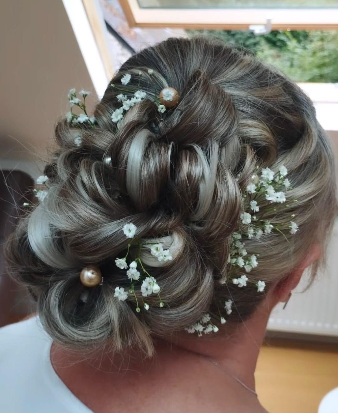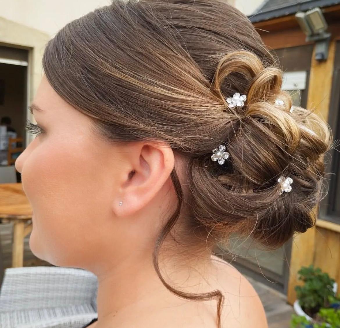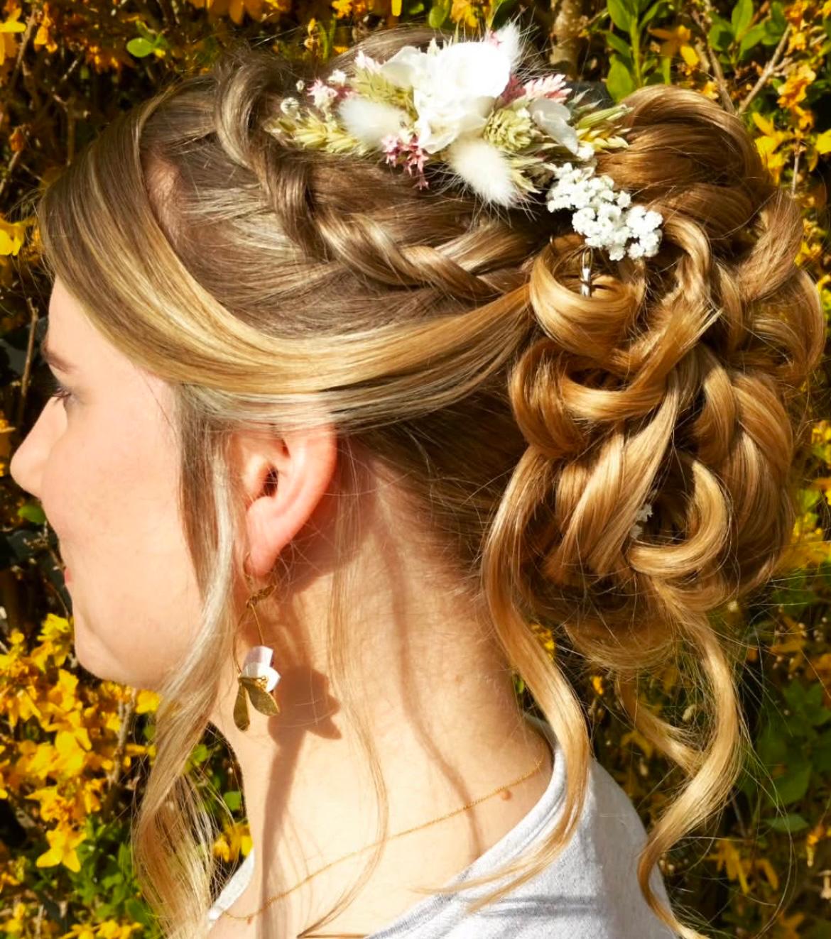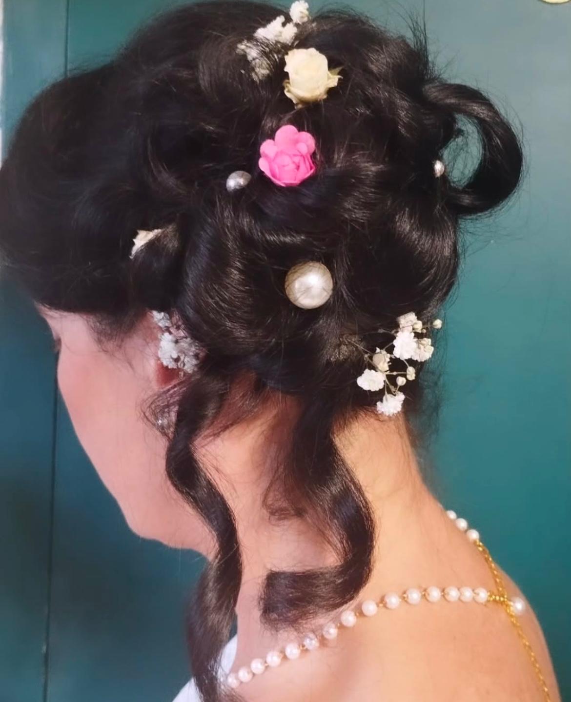 Nous réalisons un premier essai coiffure, simple et rapide, pour commencer à définir ensemble le style qui vous mettra en valeur. Nous discutons également des ornements (fleurs, accessoires, voiles…).